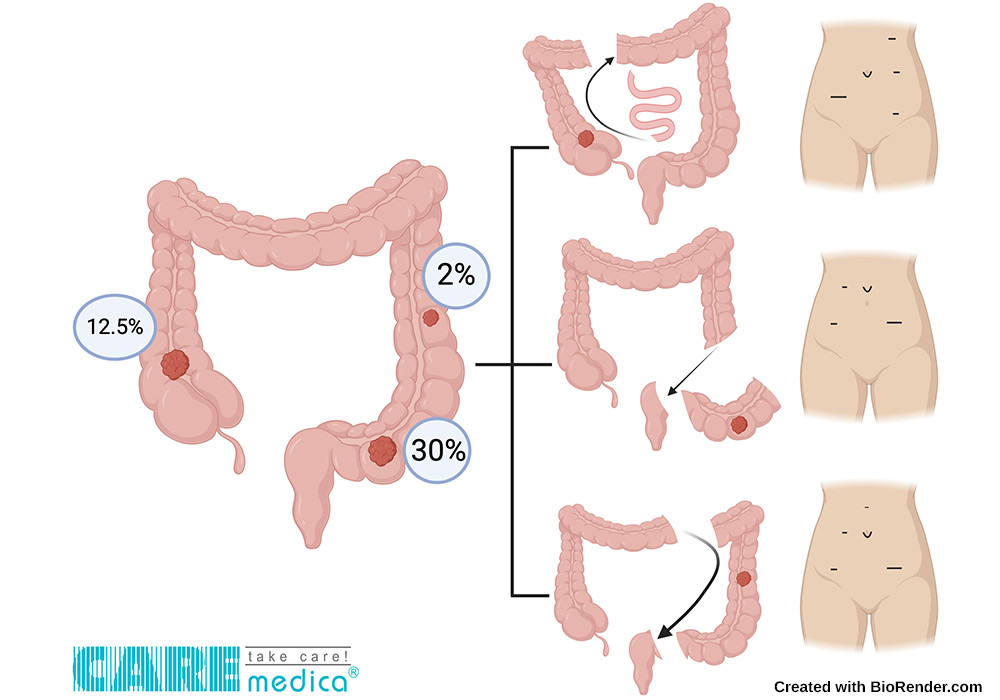 Die Wahl der chirurgischen Methode hängt davon ab, wo sich der Tumor im Dickdarm befindet. Nachfolgend sind die gängigen Operationsverfahren je nach Lokalitation des Tumors aufgeführt